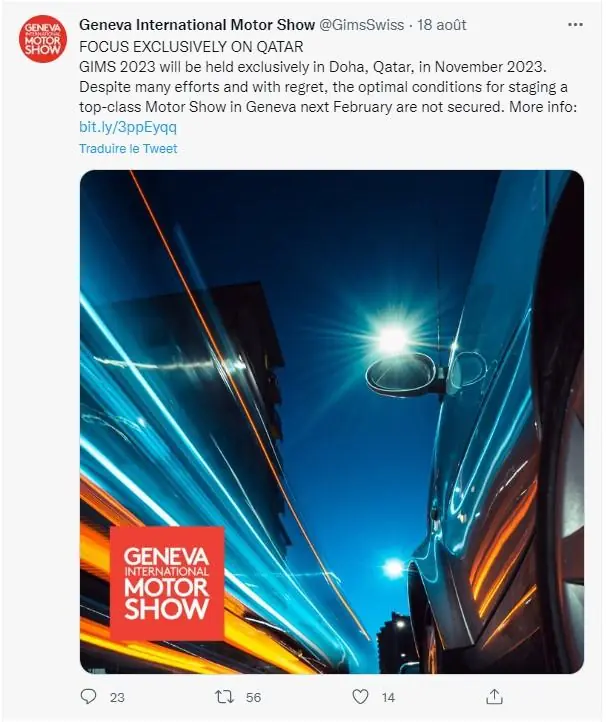 L'édition 2023 du salon de l'automobile de Genève va se tenir à Doha au Qatar