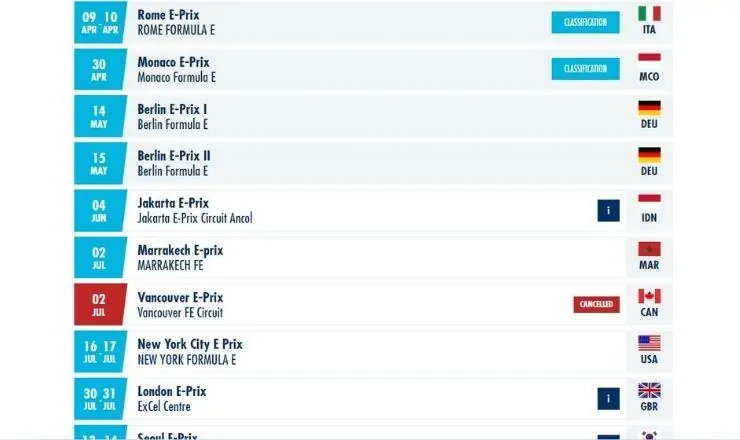 Le calendrier de la huitième saison de la Formule E retrouve donc 16 courses après le report de la manche de Vancouver, soit le calendrier le plus copieux jamais organisé dans une saison du championnat de cette compétition automobile 100% électrique et qui emprunte des circuits tracés en centre-ville.