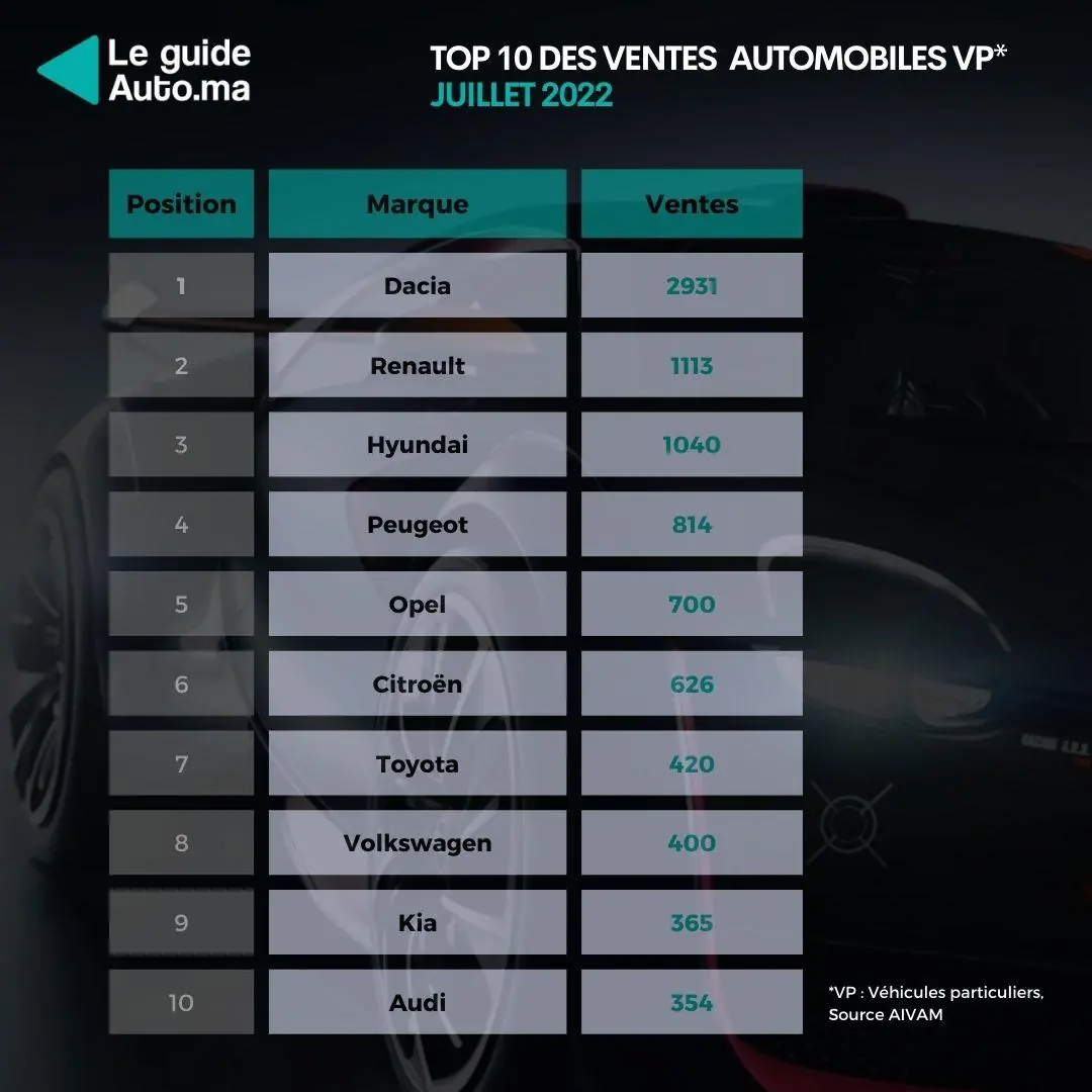 Le marché de la voiture neuve marocain VP (Véhicules particuliers) est en crise les ventes ont encore reculé en Juillet 22 par rapport au même mois de l’année précédente et la baisse atteint 10,34 % par rapport à l'année 2021. Le secteur automobile au Maroc est l'un des seuls à ne pas encore avoir profité de la reprise économique post covid quatre facteurs expliquent cette situation inédite pour la vente de véhicules